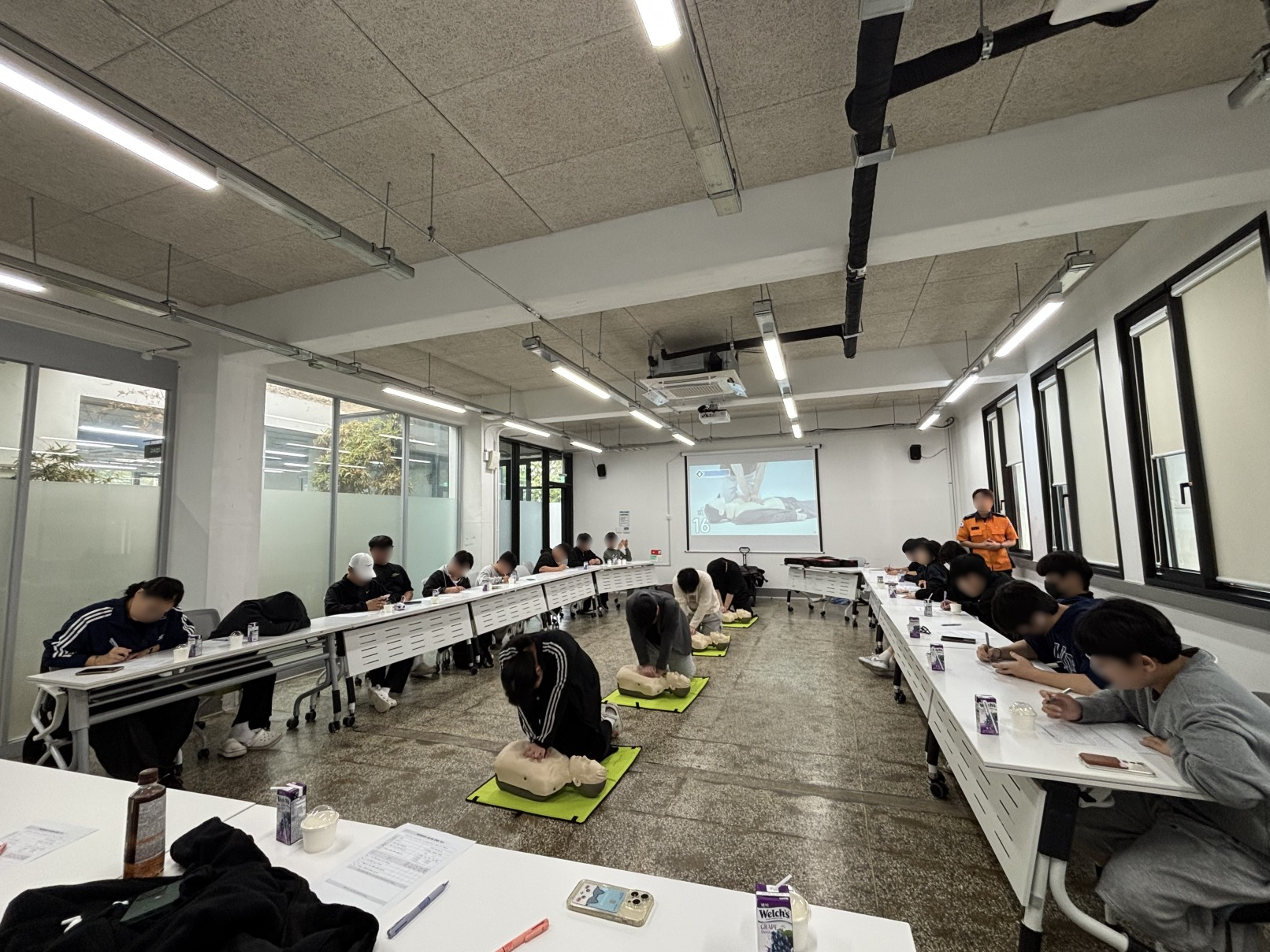 이번 교육에서는 심폐소생술의 정의와 목적을 이해하고, 심정지 확인 방법 및 실습, 자동심장충격기(AED) 사용법 실습까지 이루어져 응급상황 대처 능력을 키울 수 잇는 뜻깊은 시간을 가졌습니다.